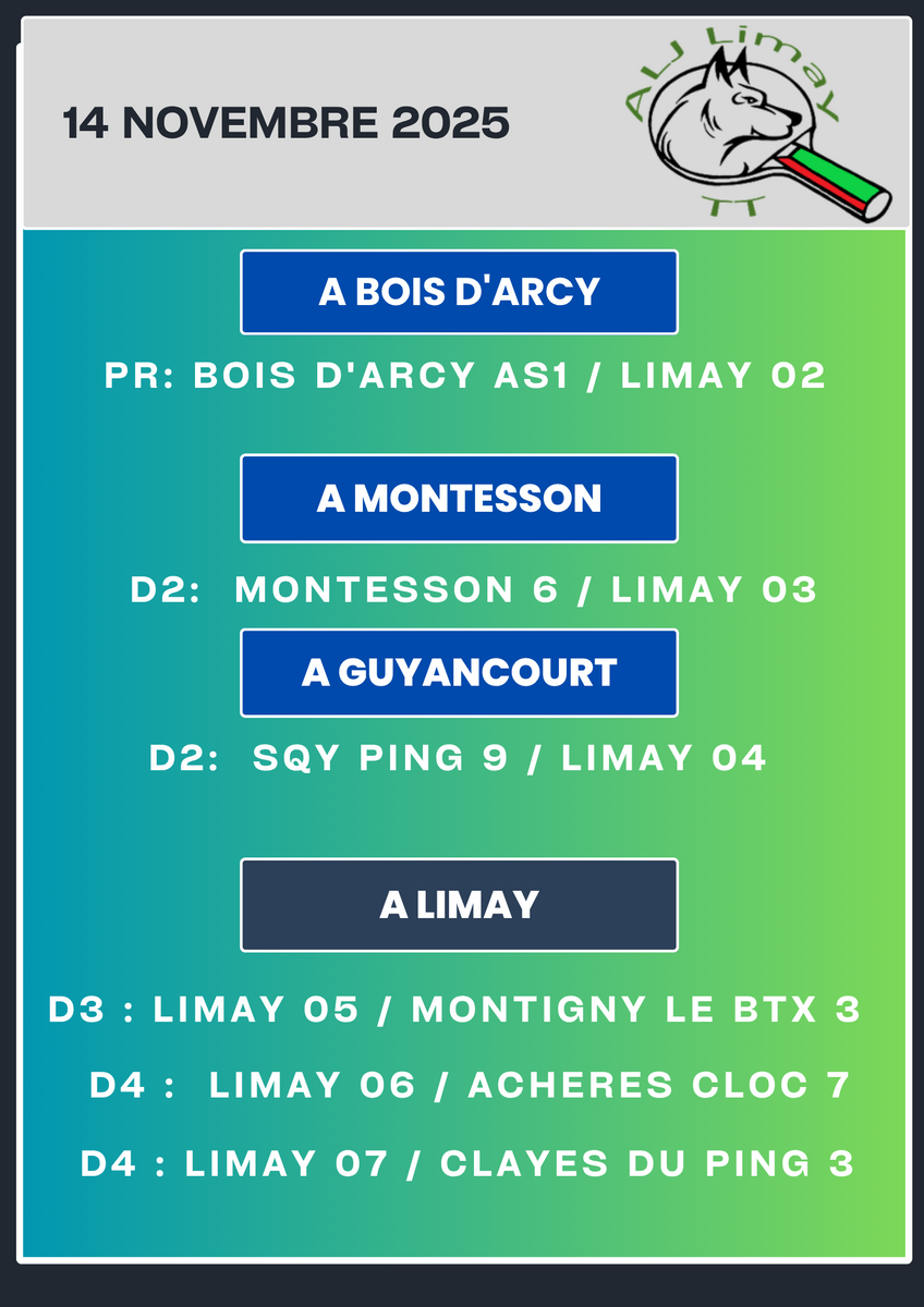 | D4 | LIMAY 7 | - | CLAYES DU PING 3 | // |