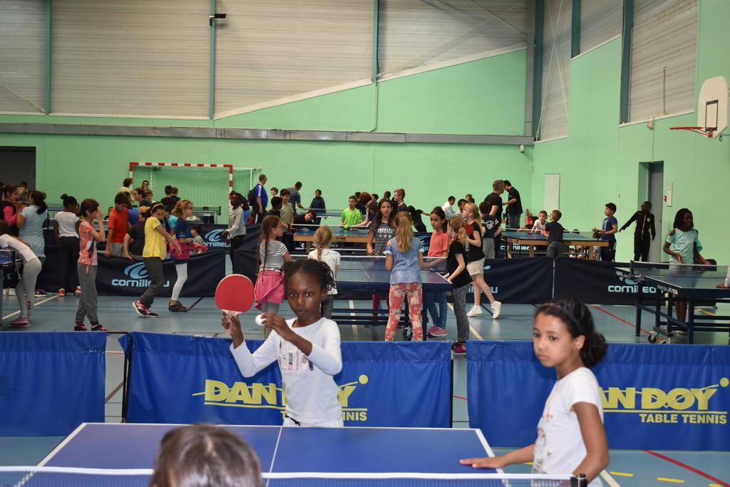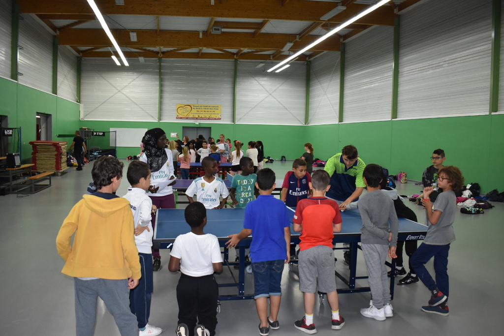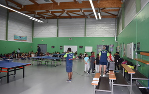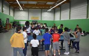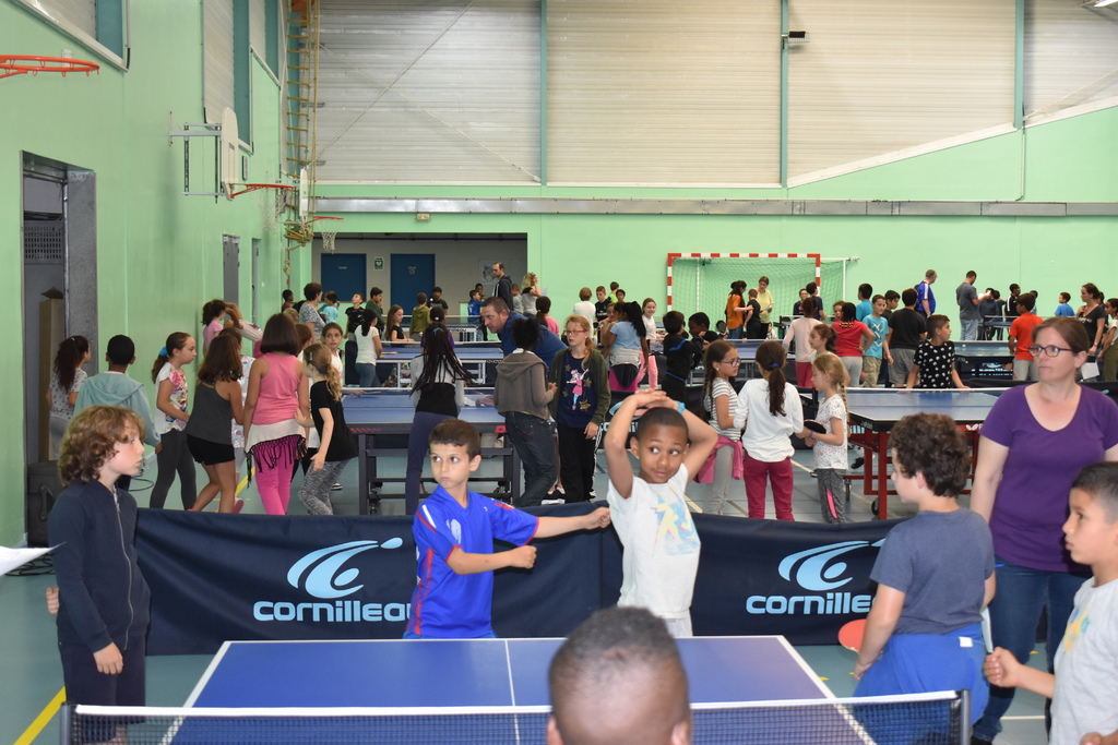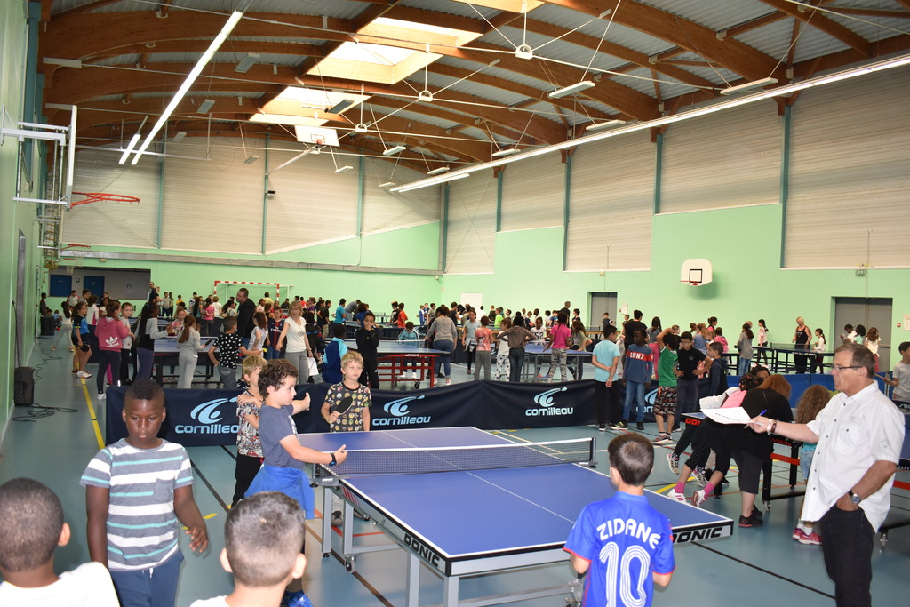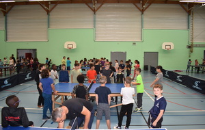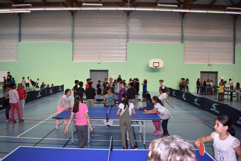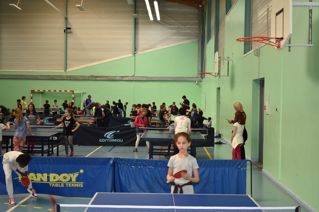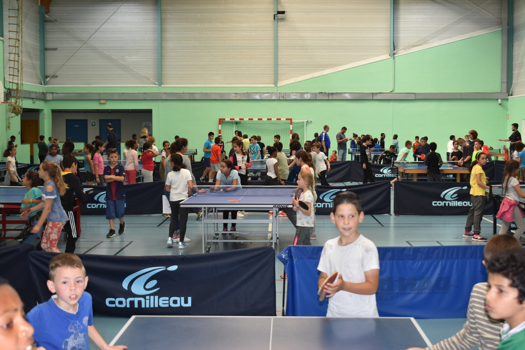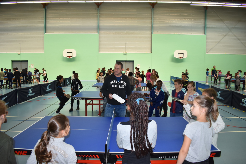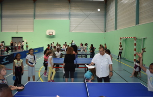 Le club avait installé 24 tables dans les deux salles pour permettre aux 250 enfants des classes de CE2, CM1 et CM2 répartis par poule de se mesurer devant la table de Ping. Ils étaient encadré par les enseignants, les parents et les bénévoles du club. Les parties se sont déroulées dans la convivialité. Les élèves étaient ravis de pouvoir taper dans cette balle de Ping-Pong si difficile à maîtriser.