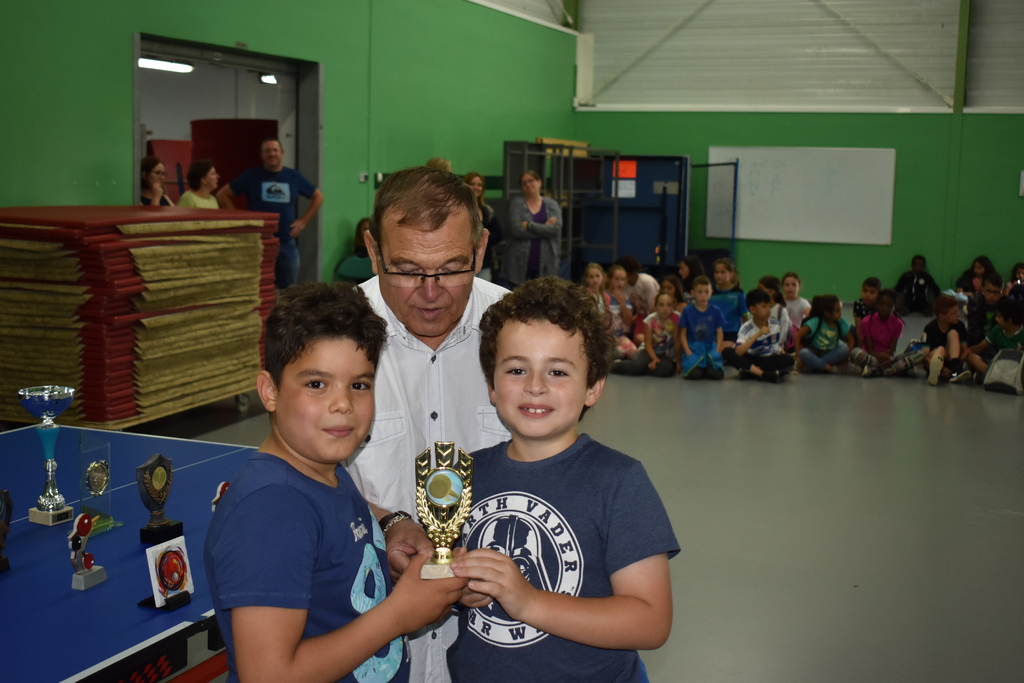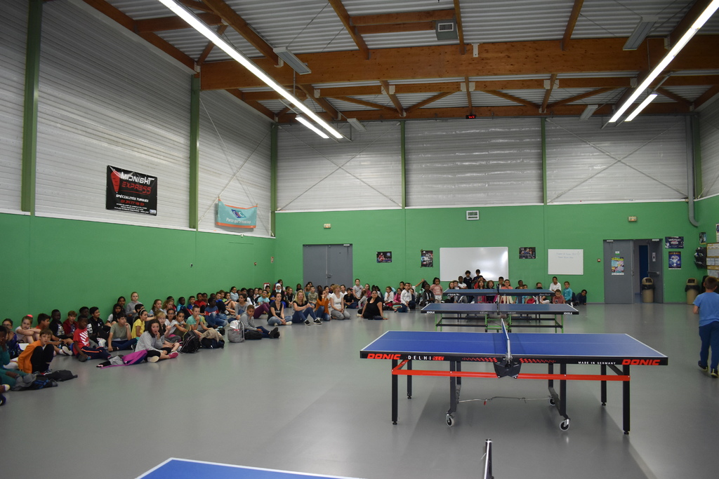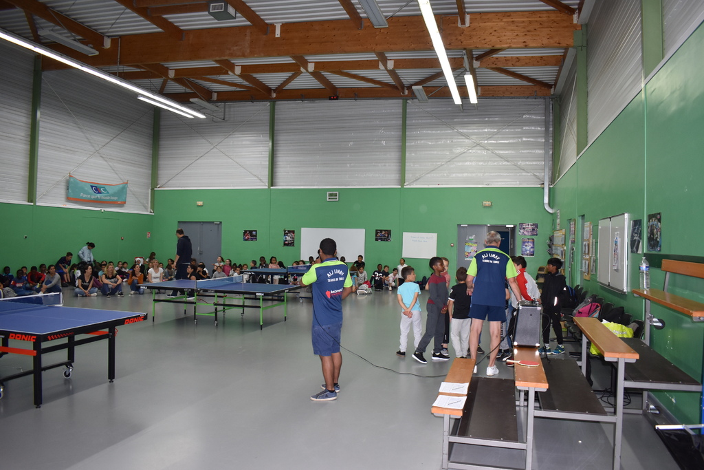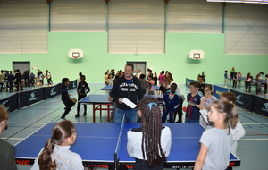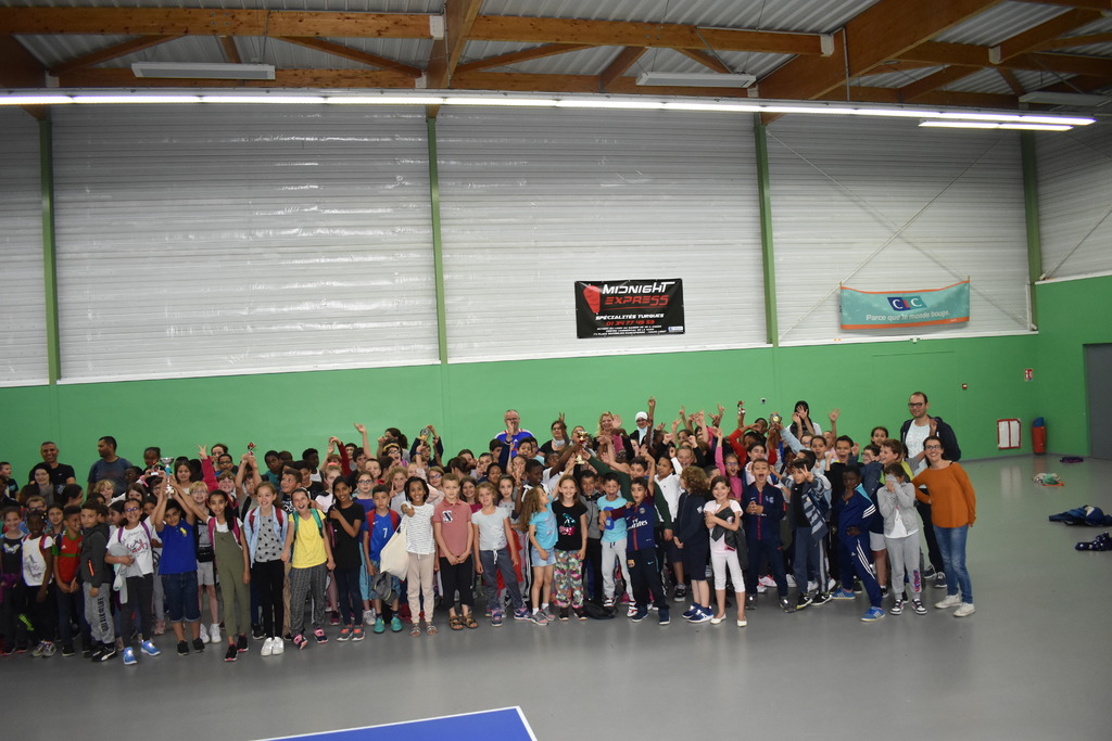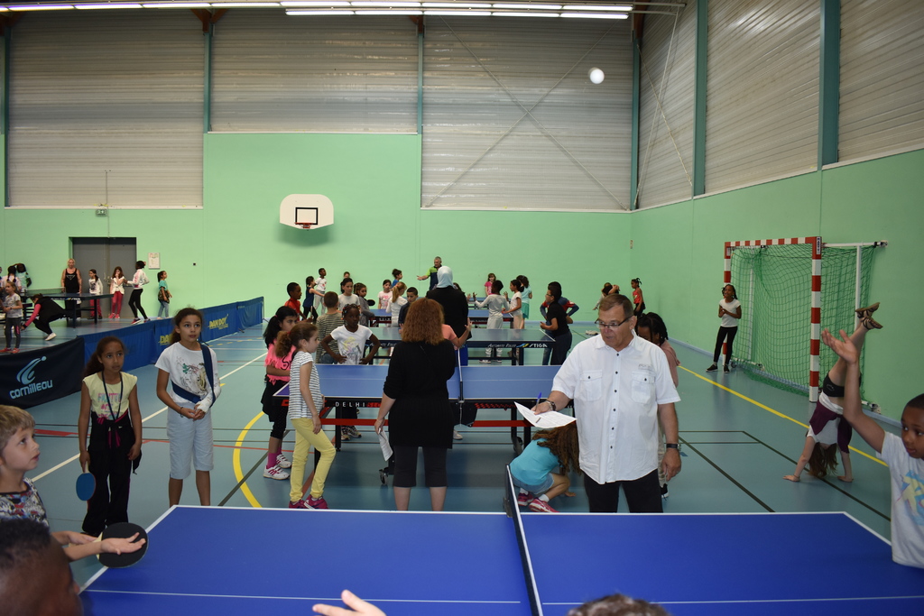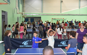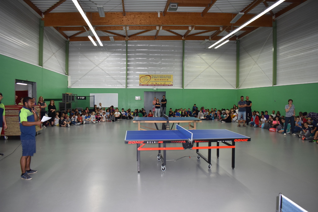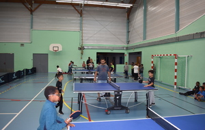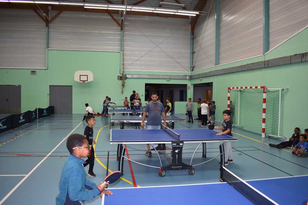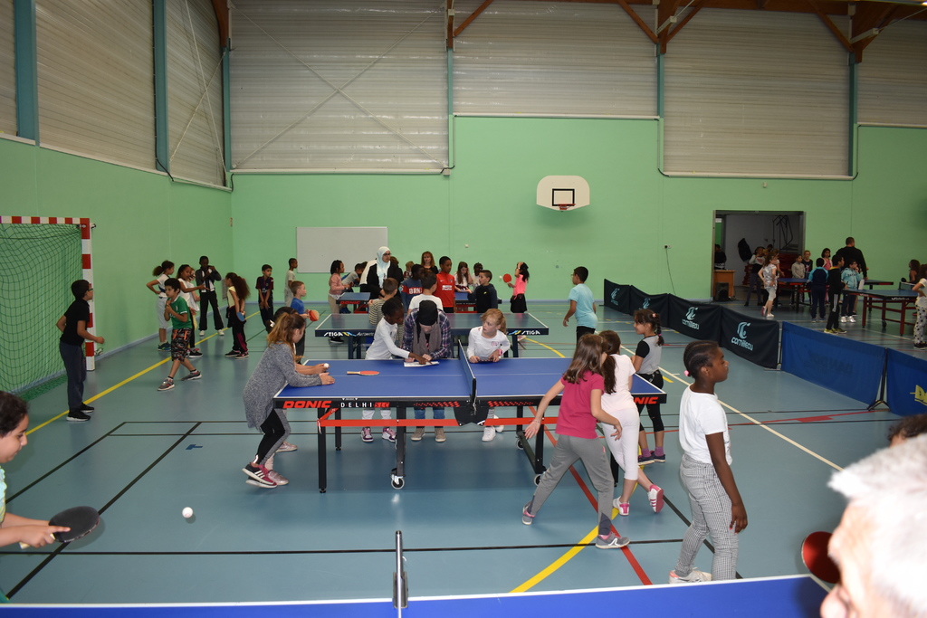 Le club avait installé 24 tables dans les deux salles pour permettre aux 250 enfants des classes de CE2, CM1 et CM2 répartis par poule de se mesurer devant la table de Ping. Ils étaient encadré par les enseignants, les parents et les bénévoles du club. Les parties se sont déroulées dans la convivialité. Les élèves étaient ravis de pouvoir taper dans cette balle de Ping-Pong si difficile à maîtriser.