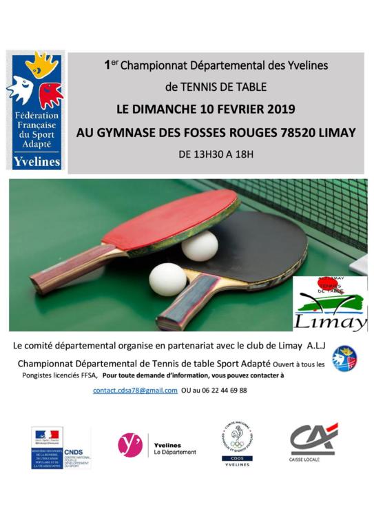 Le comité Départemental de la Fédération Française du Sport Adapté organise en partenariat avec l’ALJ Limay Tennis de Table le 1er Championnat Départemental des Yvelines de Tennis de Table du Sport Adapté ouvert à tous les pongistes licenciés FFSA.