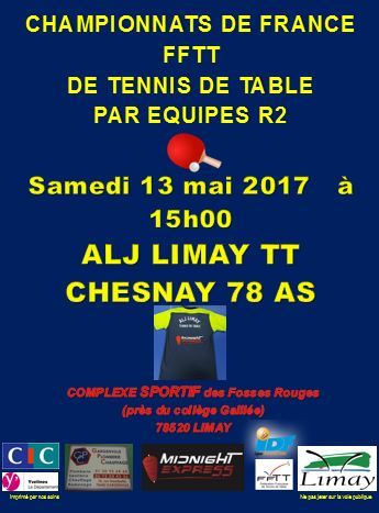 Cette fois la saison se termine pour nos pongistes de l'ALJ Limay Tennis de Table. En effet vendredi 12 et samedi 13 mai 2017 nous serons fixés sur l'avenir de nos 7 équipes engagées cette saison.
